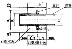 5、Ⅱ型套管穿墙处之墙壁,如遇非混凝土墙壁时应改用混凝土墙壁,其浇注混凝土范围,Ⅱ型套管应比翼环直径(D4)大200mm,而且必须将套管一次浇固于墙内。套管内的填料应紧密捣实。